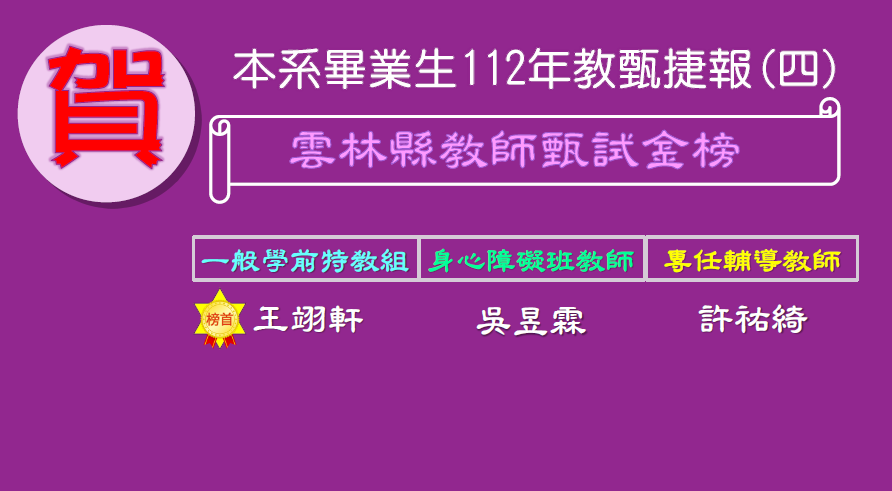 本系畢業生112年教師甄試捷報(四)雲林縣