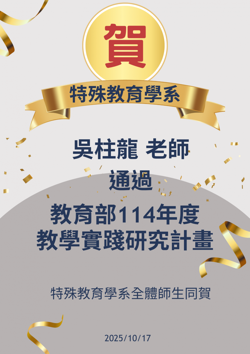 賀!!本系吳柱龍老師通過教育部114年度教學實踐研究計畫!!