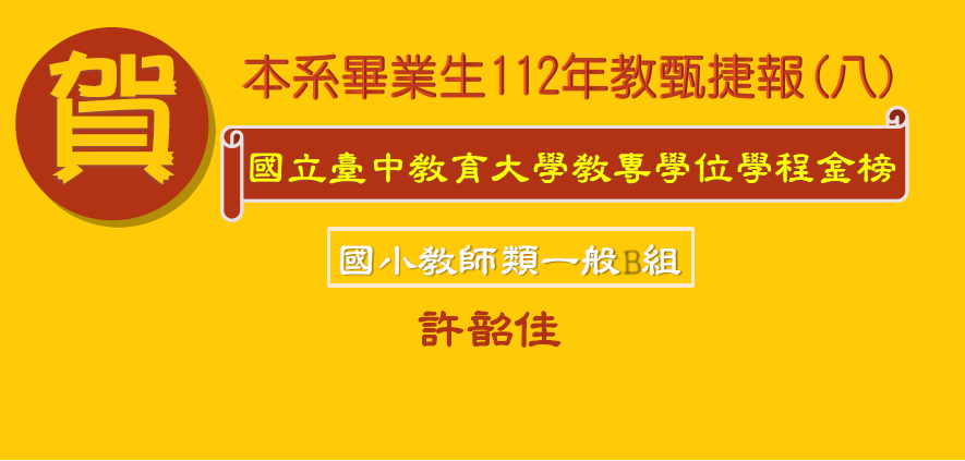 本系畢業生112年教師甄試捷報(八)國立臺中教育大學教專學位學程金榜