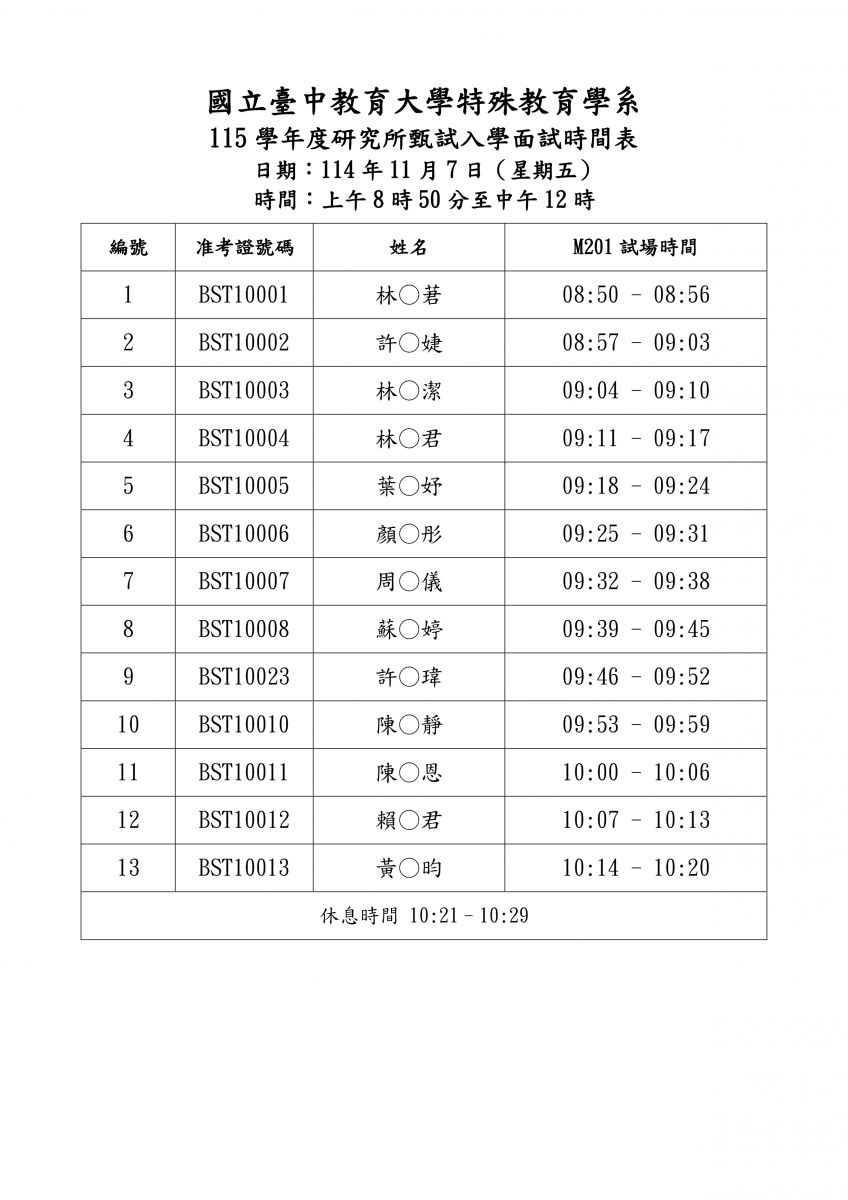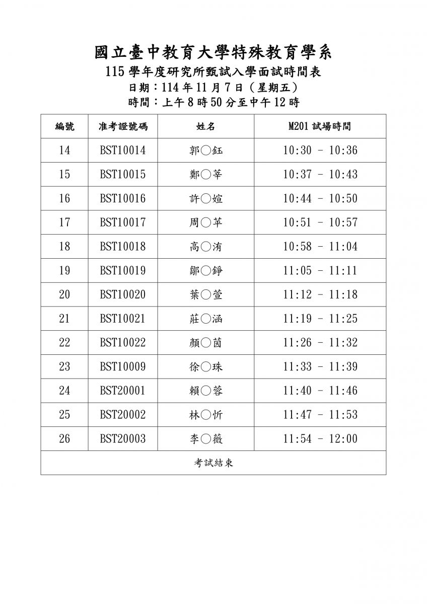 (請參閱「115學年度研究所甄試入學面試時間表」)